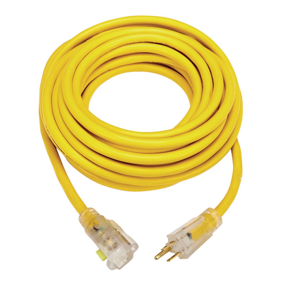 Description. Rallonge robuste de 25 pieds en fil 100 % cuivre, recommandée pour l'utilisation d'équipements et d'outils lourds. La gaine jaune vif très visible offre une sécurité supplémentaire et prévient les pertes et les vols sur les chantiers. La fiche surdimensionnée et moulée transparente, très durable, empêche tout pliage ou.