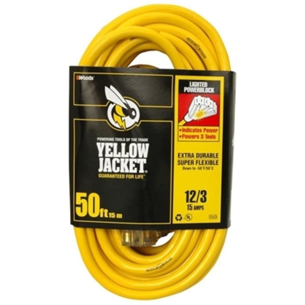 Yellow Jacket Rallonge électrique extérieure Yellow Jacket avec cordon SJTW 12/3 de 15,2 m
